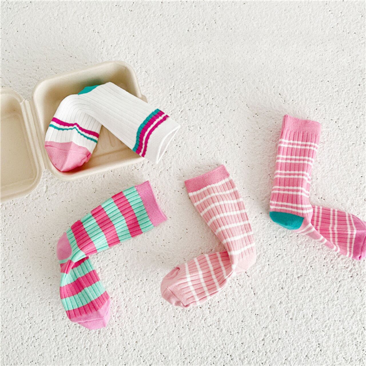 【即納】ピンクとブルーのボーダーソックス 4足セット